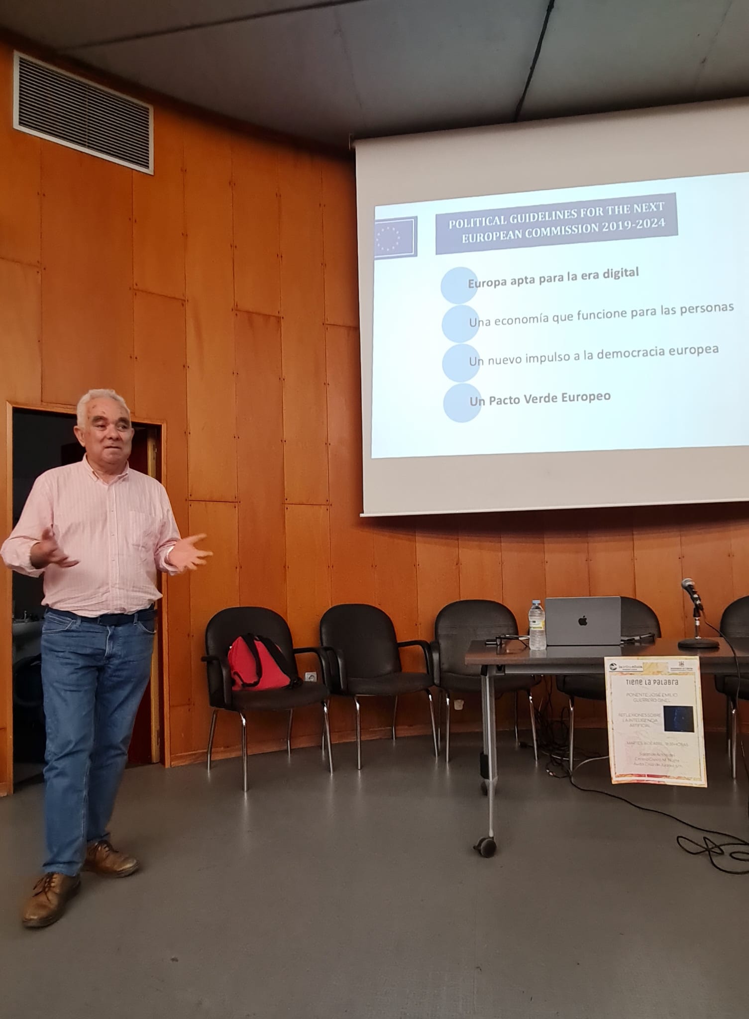 Ayer, día 16 de abril, a las 18:30 horas, en el Salón de actos del Centro Cívico Norte, un número reducido de asistentes tuvimos la suerte de asistir a una ponencia sobre Inteligencia artificial con un interés y atención como pocas veces ocurre. La sesión prometía ser buena por la calidad esperada del ponente, el Dr. José Emilio Guerrero Ginel, pero el desarrollo de la misma fue ganando en interés a medida que pasaba el tiempo, hasta el punto de que con más de dos horas ininterrumpidas, hubo que ir terminando por necesidad de cumplir el horario.